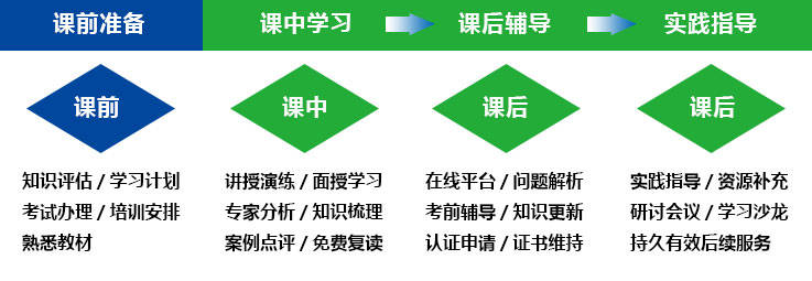• 专业的讲师团队和独立的后续服务团队为学员的认证和实践提供持续服务;