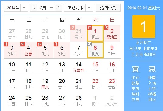 一、放假时间: 2014年1月27日至2014年2月7日,共12天,2月8日(正月初九)上班。