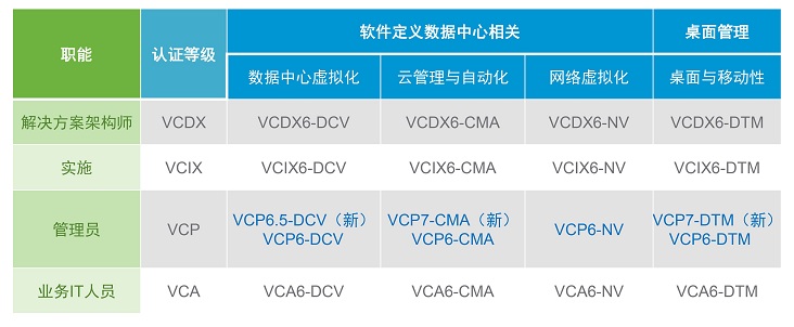 VMware公司推出了系列认证,共分为VCA、vcp、VCAP、VCDP几个级别。