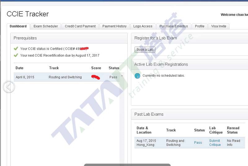恭喜学员 L C PASS CCIE R&S (8月17日 香港PASS)!