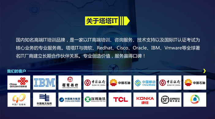 塔塔IT—高端IT培训领导品牌,专注于IT前沿技术的传播与应用。专业创造价值,服务赢得口碑!