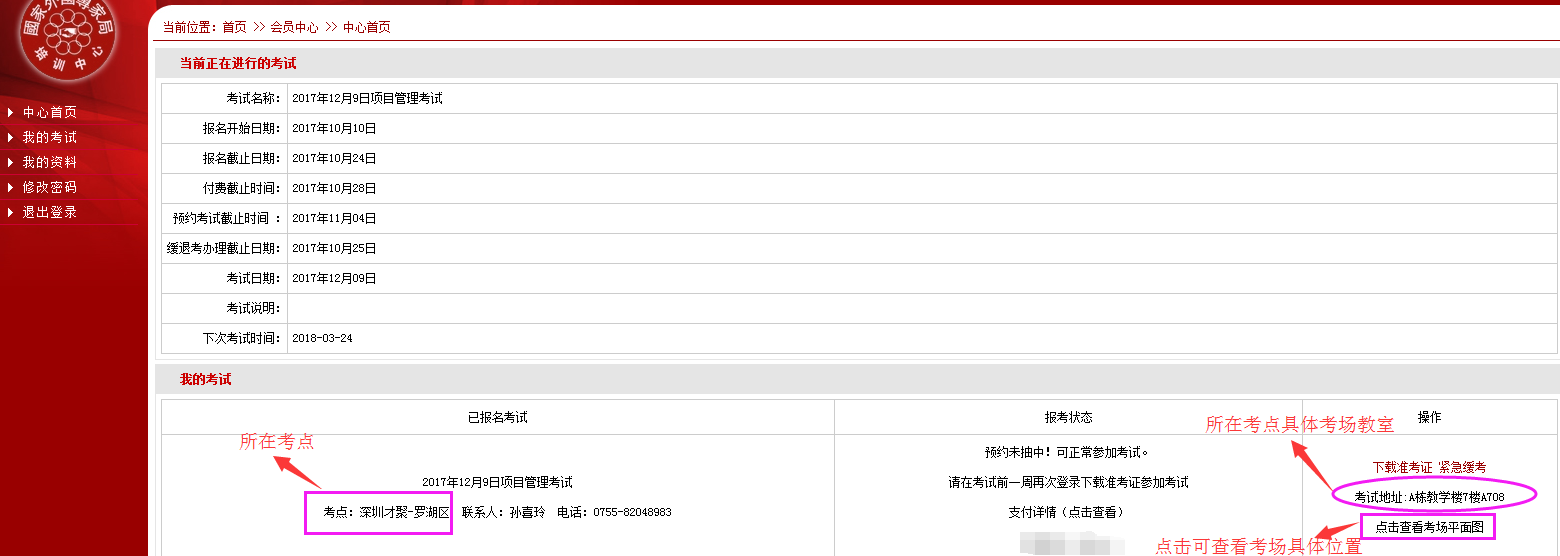4)如果在个人页面中找不到”下载准考证 ”或者无法登陆外专局考试系统的考生,请联系考点负责人。