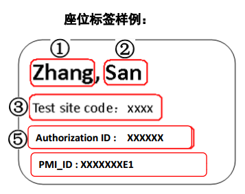 3)落座后,请核对桌面上座位标签个人信息: 姓名、PMI_ ID和您准考信上的相应信息一致,否则请联系监考老师,再次确认您的座位。