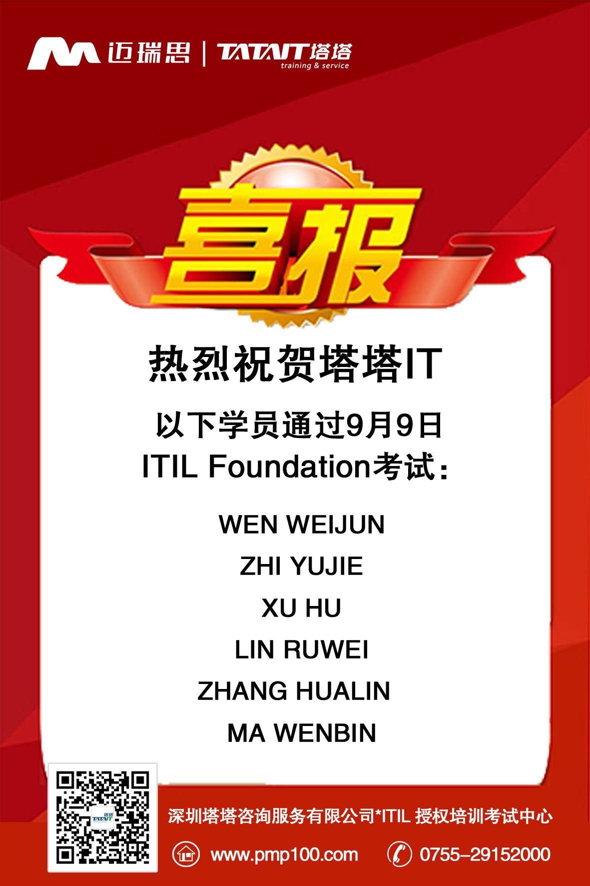 恭喜9月份 通过 ITIL® Foundation考试的学员;