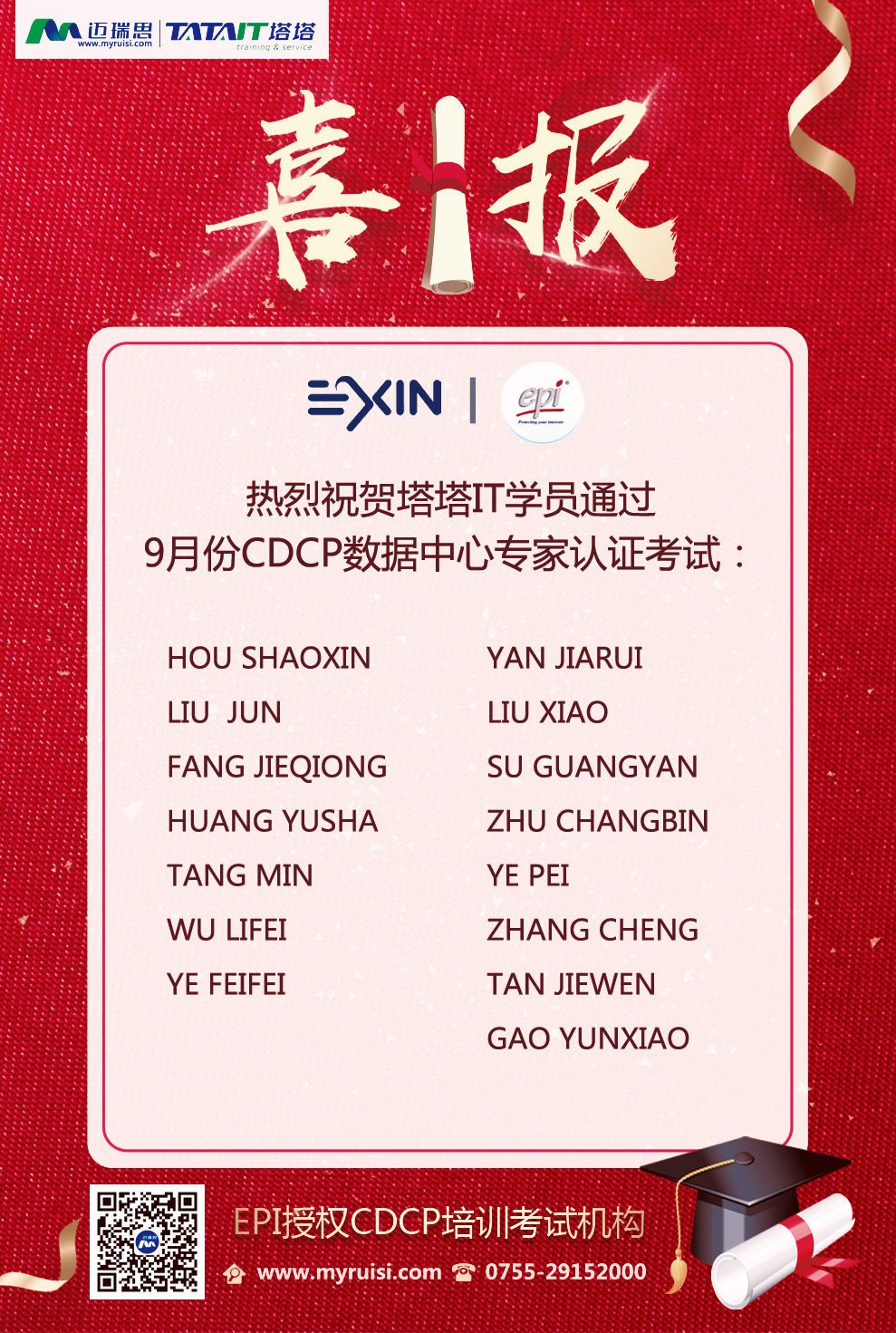恭喜9月份参加 CDCP数据中心专家认证考试的学员,全员通过考试;