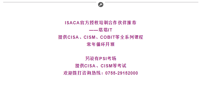 于2019年7月11日(星期四)14:00-17:00,ISACA华南社区 “数字化转型时代下的IT审计”知识分享会在深圳市中信银行大厦召开。【塔塔IT,ISACA官方授权培训合作伙伴】