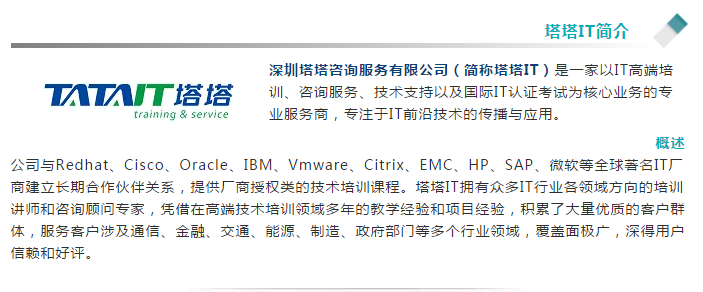 塔塔IT—高端IT培训领导品牌,专注于IT前沿技术的传播与应用。专业创造价值,服务赢得口碑!